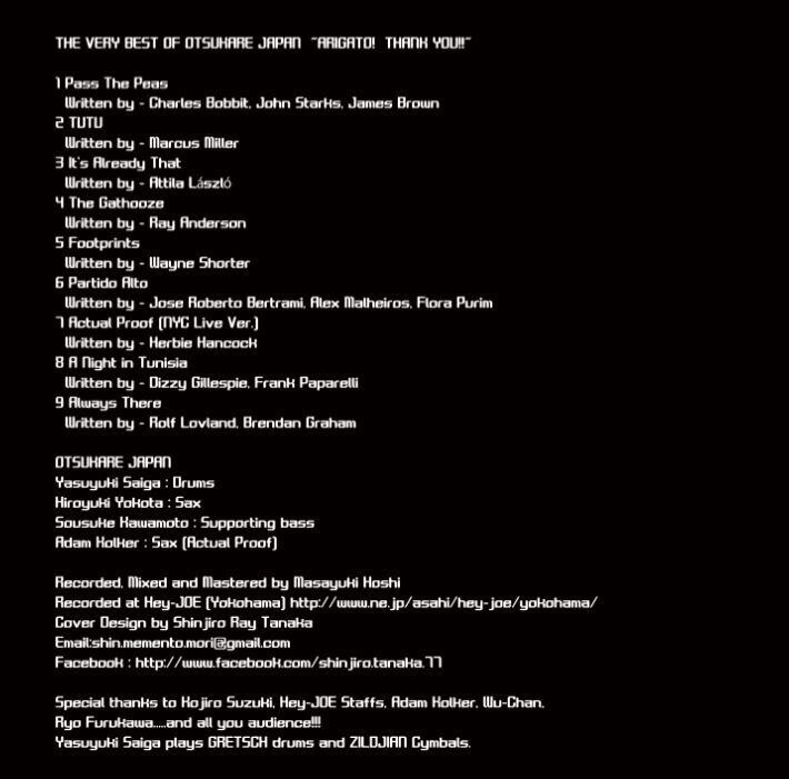 Special thanks to Kojiro Suzuki, Hey-JOE Staffs, Adam Kolker,Wu-Chan, Ryo Furukawa.....and all you audience!!!
